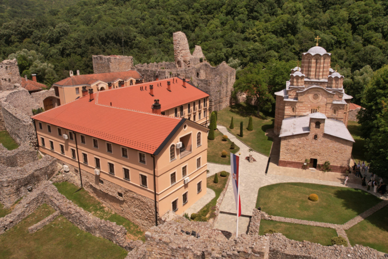 "Usled najezde Turaka na Balkan Lazar je prvo podigao utvrđenje, čija jedna kula sada nosi ime po Milošu Obiliću, pa tek onda manastir unutar tih bedema. Sedam visokih kula okruživalo je svetinju, a sada su od njih ostali samo temelji. Knez Lazar je Ravanicu gradio kao zadužbinu i grobnu crkvu i na materijalu se nije štedelo, posebno i pažljivo su je ulepšavali ukrasima. Po arhitektonskim i likovnim obeležjima, Ravanica je rodonačelnik takozvane moravske škole. Gradio ju je Rade Neimar iz Bara", kažu za RINU u ovom manastiru.