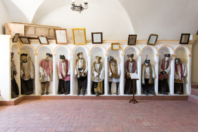 Tu su i dve velike sobe. U jednoj od njih nalazi se kapela sa nišama u kojima su izloženi mrtvi sveštenici, poređani jedan do drugog. Druga prostorija je kosturnica, poluskrivena prostorija u kojoj su pokojnici mumificirani i gde se i danas nalazi originalni sto na kome su bila isušivana njihova tela. Sve navedeno se može pogledati u okviru posete uz prethodnu najavu.