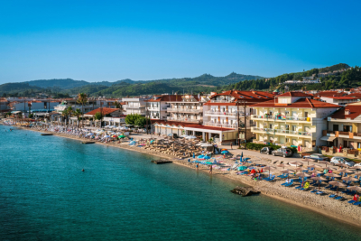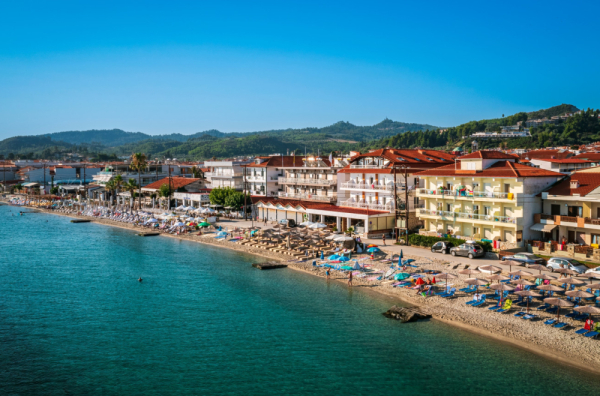 Kombinacija zelenila, mirisa borovine i tirkizno plave boje Egejskog mora čine ga privlačnim.