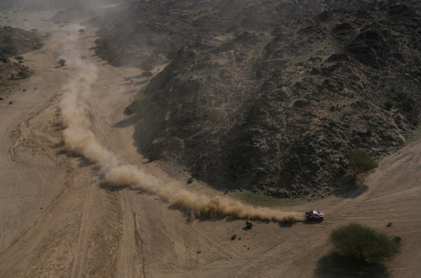 U automobilskoj konkurenciji, drama se rasplamsala u poslednjih 45 km kroz stenovite dine i pesak.