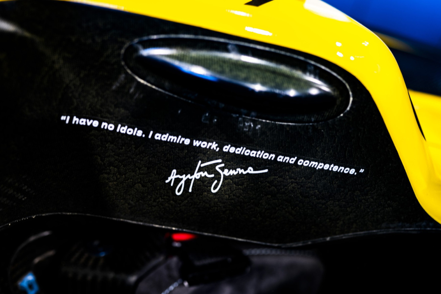 Što se tiče bolida, na njemu su u posebnom fontu natpisi Sena, a našlo se mesta i za njegov citat: "Nemam idola. Divim se radu, posvećenosti i sposobnosti".