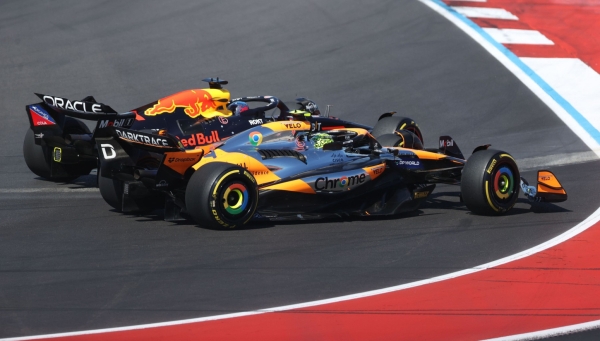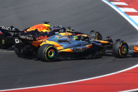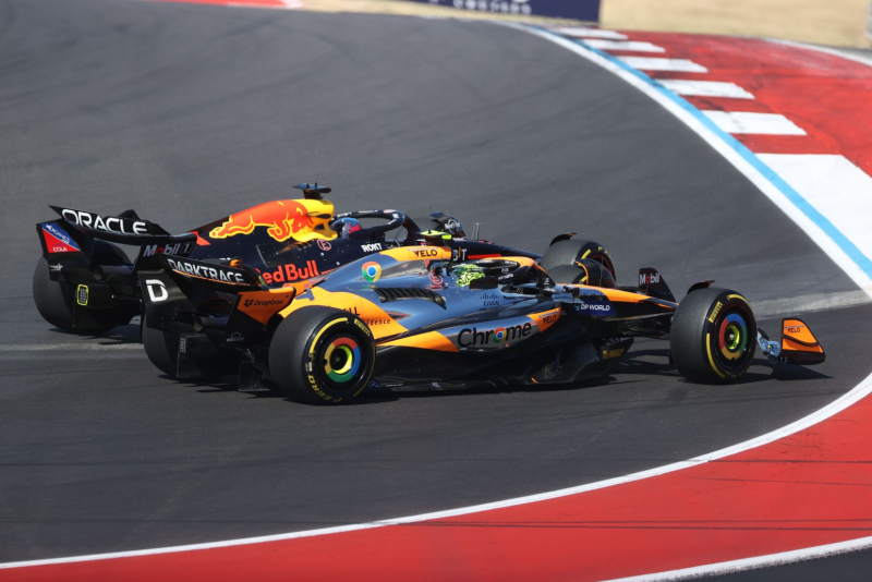 Prešao je na spoljnu liniju u 12. krivini dok je Ferstapen branio unutrašnju. Oba bolida su izletela sa staze na izlazu i Noris se našao ispred.