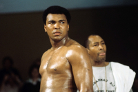 U filmu "Thrilla in Manila" učestvuje u brutalnom meču sa svojim najvećim neprijateljem Frejzerom.