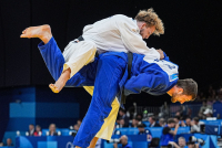 Probao je Nemanja Majdov da donese prvi poen reprezentaciji Srbije u ovom četvrtfinalu. Dobro se držao srpski džudista, pa je negde na sredini borbe obojica su imali po jednu sudijsku kaznu, kako je odmicala borba, tako je Majdov zaradio još jednu šido kaznu. Posle četiri minuta regularnog dela nije bilo pobednika, pa se onda nastavila borba gde se tražio zlatni bod. Majdov je poražen zbog treće šido kazne.  Inače Majdov je poražen u ovoj borbi od rivala koji se takmičiti u kategoriji niže.