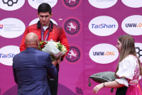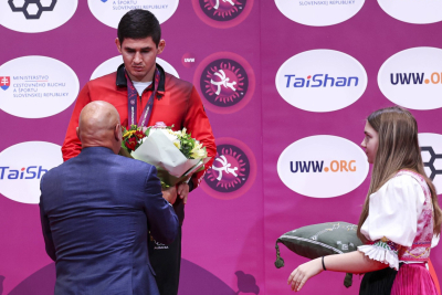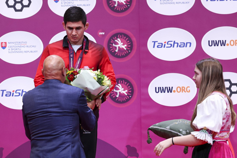 Mamijašvili, koji je inače i potpredsednik Svetske rvačke asocijacije, bio je zadužen da okiti najbolje, pa tako i Čermena Valijeva, zemljaka, koji nastupa pod zastavom Albanije.