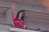 Srpska tekvondistkinja Aleksandra Perišić bila je oduševljena dočekom na balkonu skupštine grada.