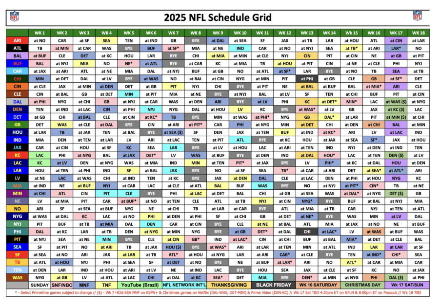 Prvi meč sezone koji će biti odigran van SAD biće duel Los Anđeles Čardžersa i Kanzas Siti Čifsa u Sao Paulu na otvaranju sezone 5. septembra.