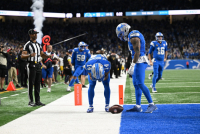 Meč je završen kontroverznom sudijskom odlukom – ofanzivni pas-interferens Amon-Ra St. Brauna poništio je tačdaun Lajonsа u poslednjoj sekundi utakmice.