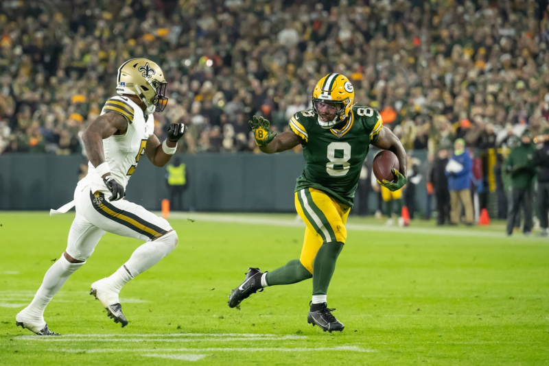 Kvoterbek Pekersa Džordan Lav je upisao 16/28 uspešnih dodavanja za 182 jarda uz jedan tačdaun. Šansu je dobio i Malik Vilis, koji je imao 1/2 dodavanja za 34 jardi.