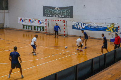 Prvo su na parket Sportskog centra Slodes istrčali futsaleri Partizana i ekipe Časopis Borba-Soccer.