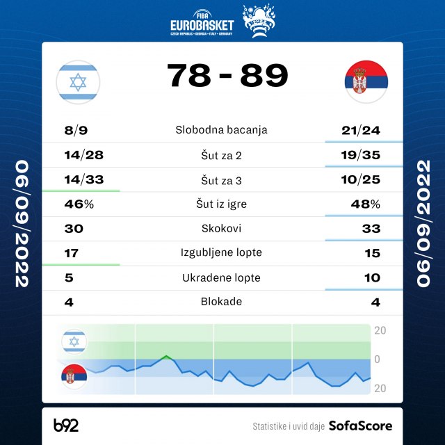 Nemanja Nedović – Baš kao protiv Finske, Nedović je i protiv Izraela krenuo u dobrom ritmu. Bio je aktivan defanzivno na samom startu ukravivši dve lopte, a i u napadu je bio raspoložen. Nažalost, povredio je list u drugoj četvrtini i videćemo koliki je stepen povrede. Nije igrao u drugom poluvremenu.