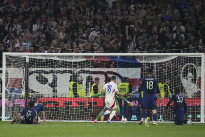 Loptu je u mrežu glavom skrenuo Leni Joro, posle udarca Manuela Ugartea – za muk na stadionu u Lionu.