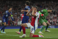 Arsenal se tek u finišu poluvremena malo probudio. Tako je Mikel Merino u 37. minutu tražio penal posle duela sa Žoaom Nevešom, ali je sudija Slavko Vinčić odmahnuo rukom. Nije se oglašavao ni VAR.
