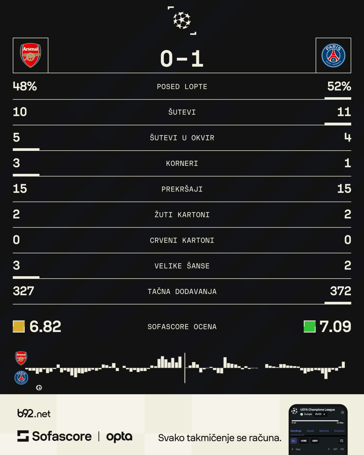 Revanš je na programu naredne srede u Parizu. Pobednik će u finalu igrati sa boljim iz dvomeča Barselona – Inter.