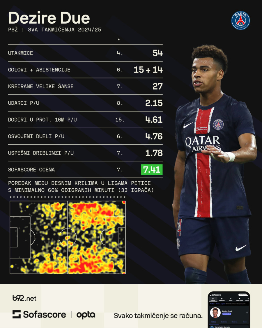 A Due je u debitantskoj sezoni u dresu "svetaca" bukvalno eksplodirao sa 15 golova i 16 asistencija na 54 utakmice.