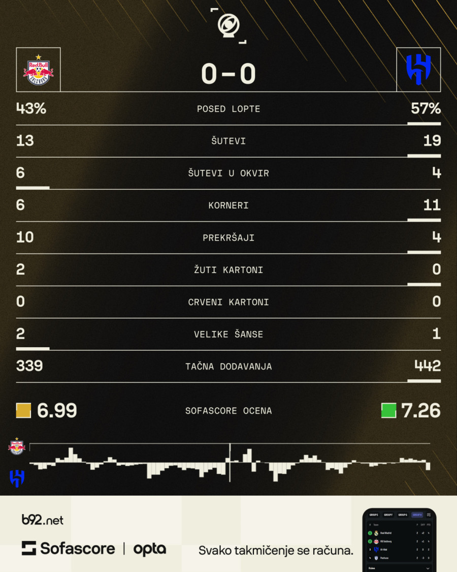 U drugom kolu Grupe H, Salcburg i Al Hilal remizirali su rezultatom 0:0.