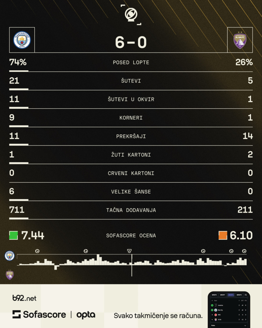Mančester siti je pobedio Al Ain sa ogromnih 6:0 u drugom kolu Grupe G, u meču odigranom u Atlanti.