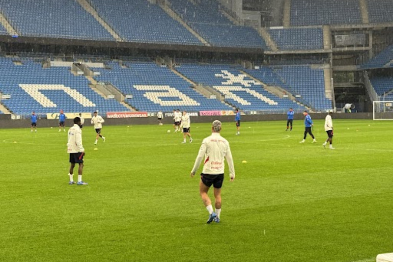 Crveno-beli osetili su teren i travu po kišnom vremenu u Poznanju, lagano su istrčavali deonice i radili vežbe istezanja, a na kraju su imali i segment u kom su se dodavali.
