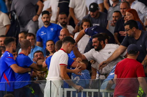 Tokom nadoknade vremena, nastala je velika gužva u delu tribine na kojoj su sedeli članovi delegacije, ali i igrači gostiju koji nisu imali mesta u protokolu.