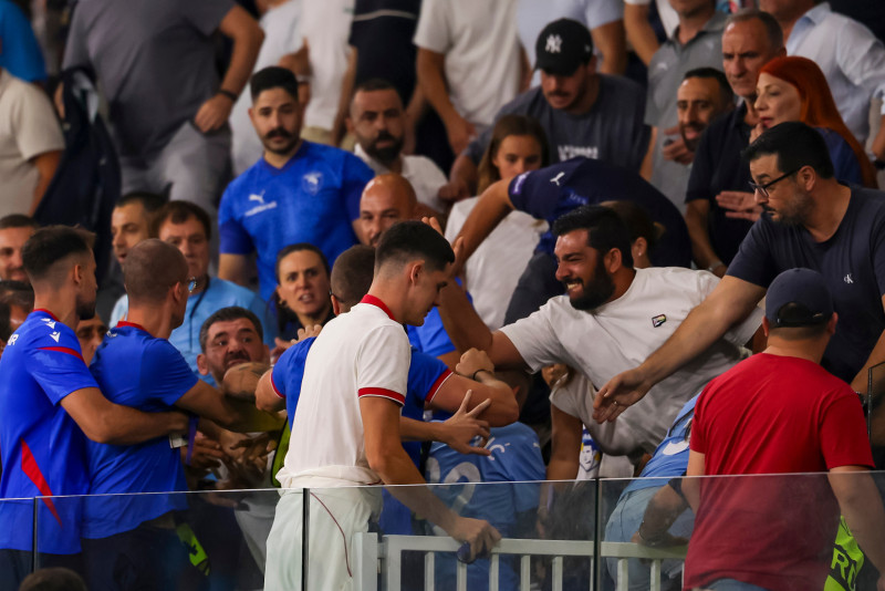Fudbaler srpskog šampiona Stefan Leković udaren je u glavu od strane osobe u prsluku redara, dok je Marko Arnautović potrčao ka počiniocu želeći da se obračuna.