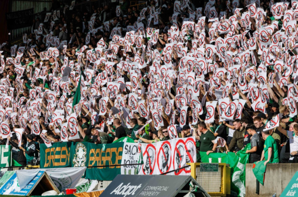 "Svi navijači Seltika protiv uprave", pisalo je na velikom zelenom transparentu.