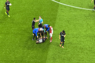 U 32. minutu meča zakucao se Lagerbjelke u Arnautovića, koji je završio na zemlji očigledno u velikim bolovima.