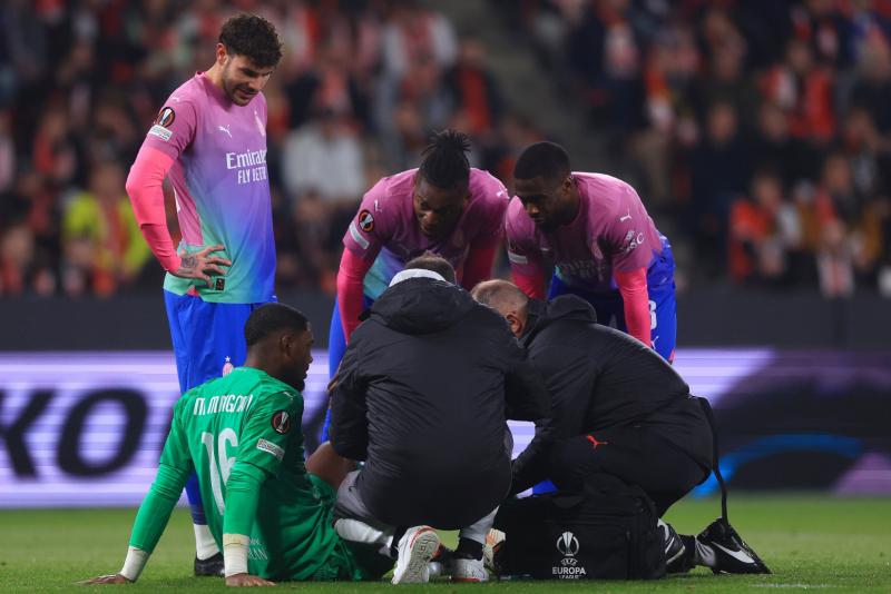 Francuski fudbalski golman Majk Menjan povredio je mišić na desnoj butini samo šest nedelja pre Evropskog prvenstva, saopštio je njegov klub Milan.