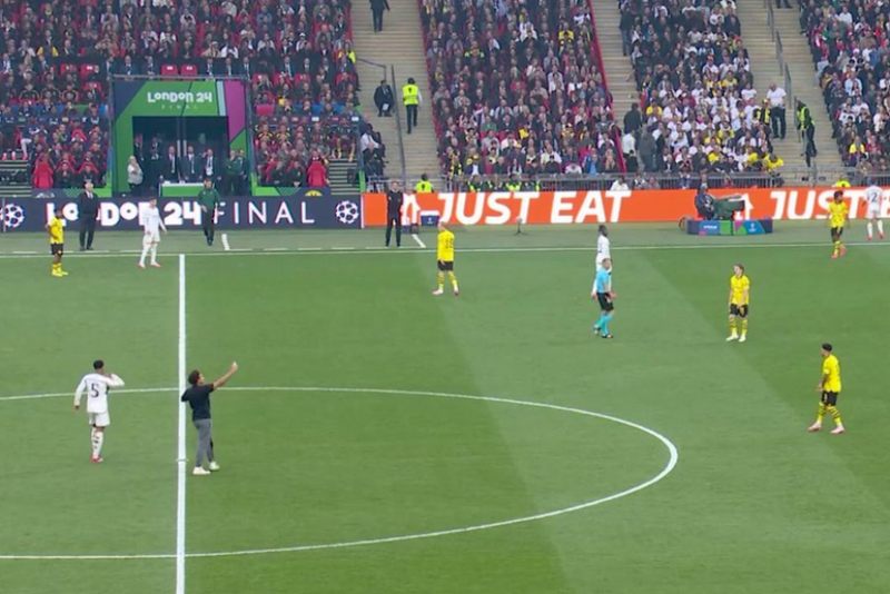 Meč Borusije Dortmund i Real Madrida prekinut je u prvom minutu tako što je jedan navijač je ušao na teren i uslikao selfi sa Džudom Belingemom.