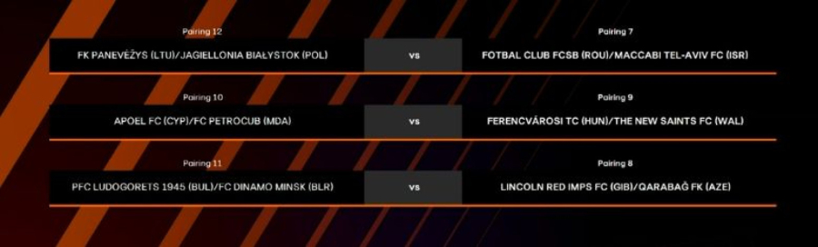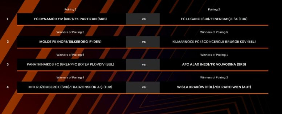 S druge strane, ako Partizan ispadne iz kvalifikacija za Ligu šampiona, u borbi za LE će igrati sa poraženim iz duela između švajcarskog Lugana i turskog Fenerbahčea.