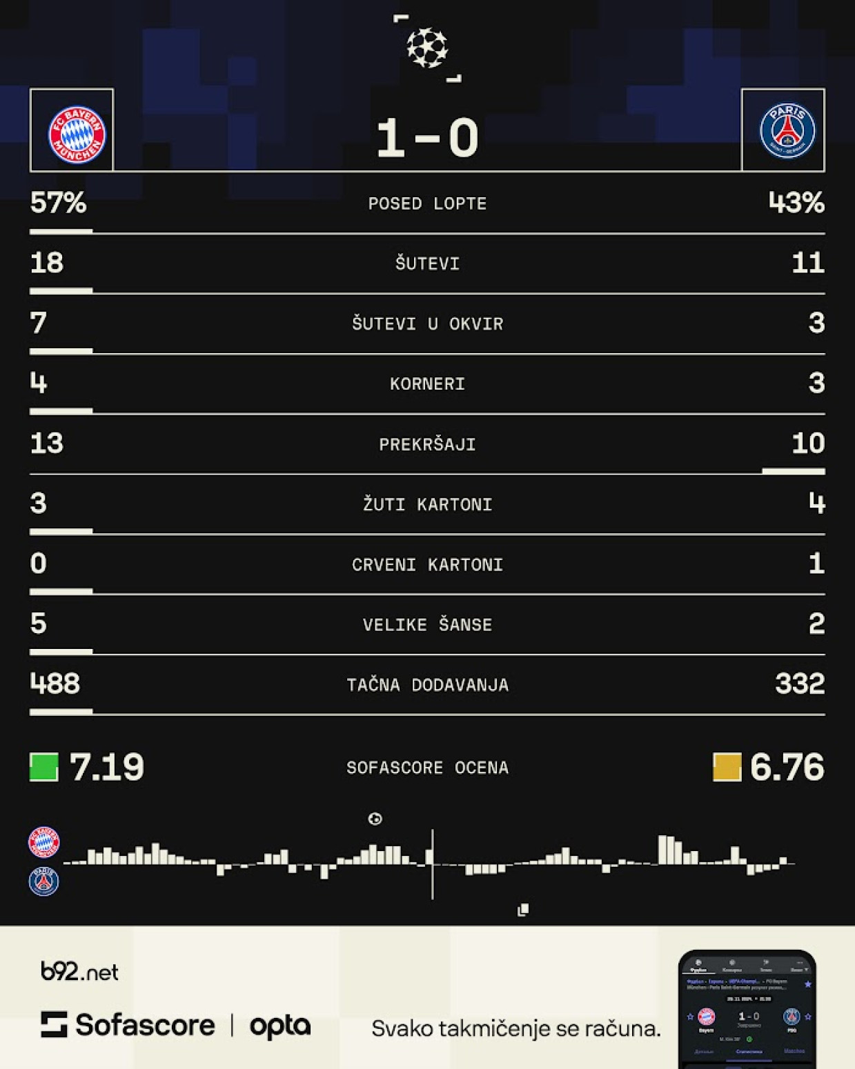 Nije uspeo PSŽ da "zakuva" utakmicu na "Alijanc areni", pa je Bajern sačuvao minimalnu prednost – 1:0.