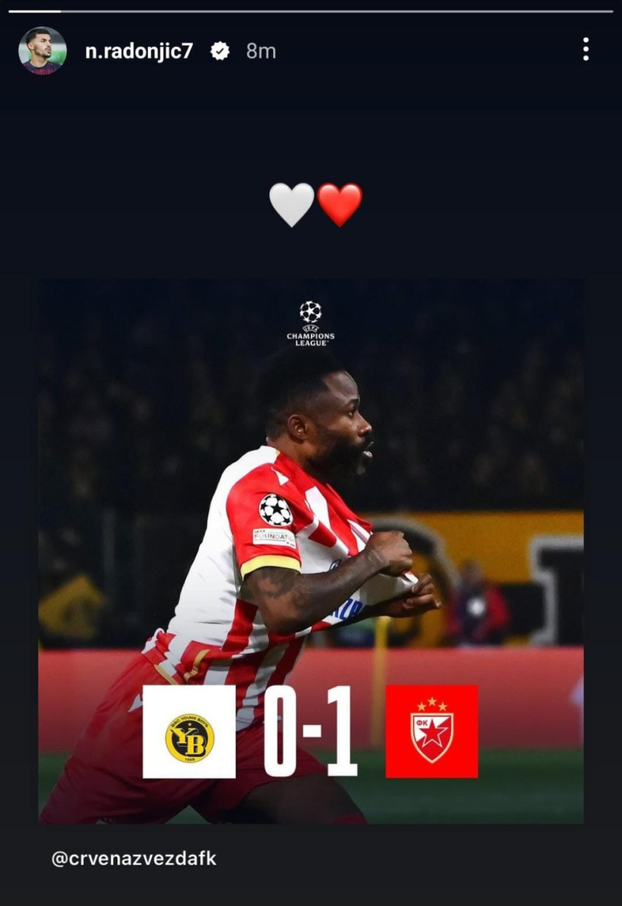 Odmah po završetku utakmice, Radonjić je na društvenim mrežama podelio fotografiju Gelora Kange, uz rezultat meča, a iznad slike dodao crveno i belo srce.