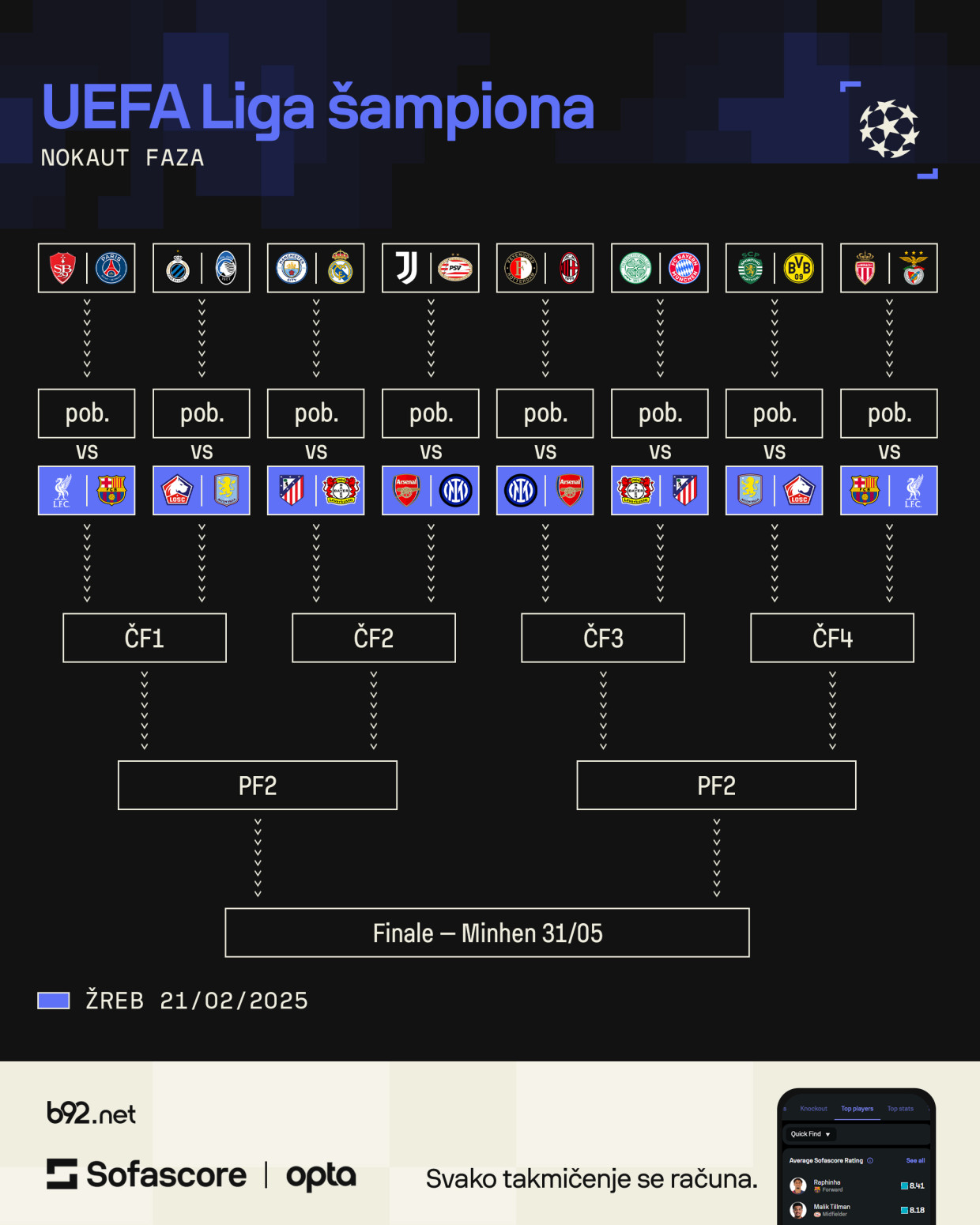 Poznat je i, donekle, kostur za narednu fazu Lige šampiona. Odnosno, po dva potencijalna rivala svakog tima.