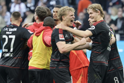 Fudbaleri Union Berlina pobedili su u Frankfurtu domaći Ajntraht 2:1, u utakmici 25. kola Bundeslige.