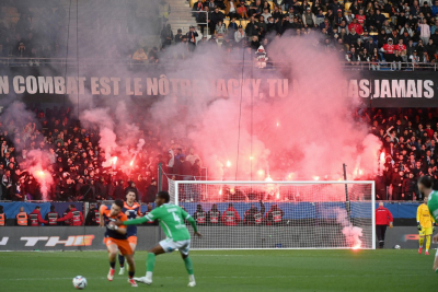 Sudija Fransoa Leteksje poslao je igrače u svlačionicu nakon bakljade i ubacivanja pirotehničkih sredstava od strane domaćih navijača na teren.