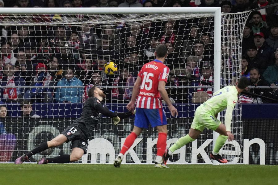Najpre je Lamin Jamal u drugom minutu nadoknade pogodio, uz pomoć Reinilda, od koga se lopta odbila i promenila pravac, završivši iza leđa Oblaka.