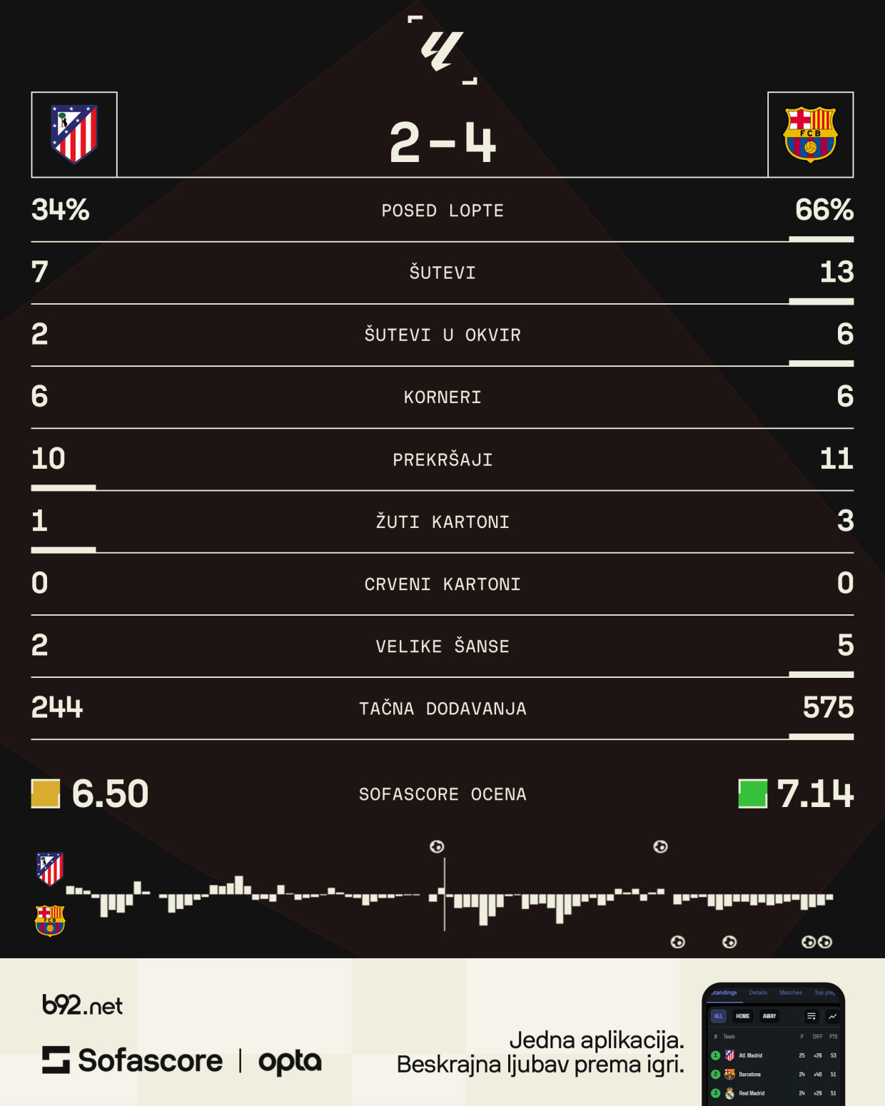 Imala je Barsa više od igre i u finišu, što je na kraju moglo da se vidi i po rezultatu, pošto su u nadoknadi postigli još dva gola.