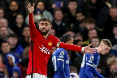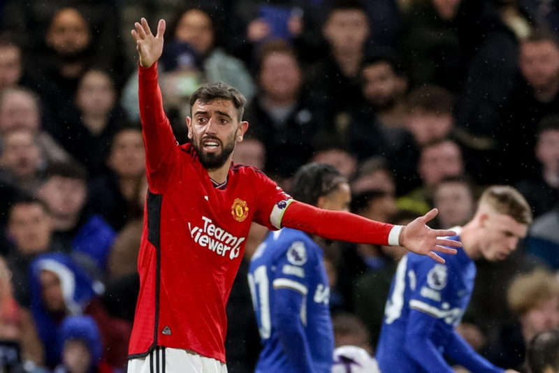 Kapiten Mančester junajteda Bruno Fernades frustriran je posle poraza od Čelsija u 31. kolu Premijer lige.