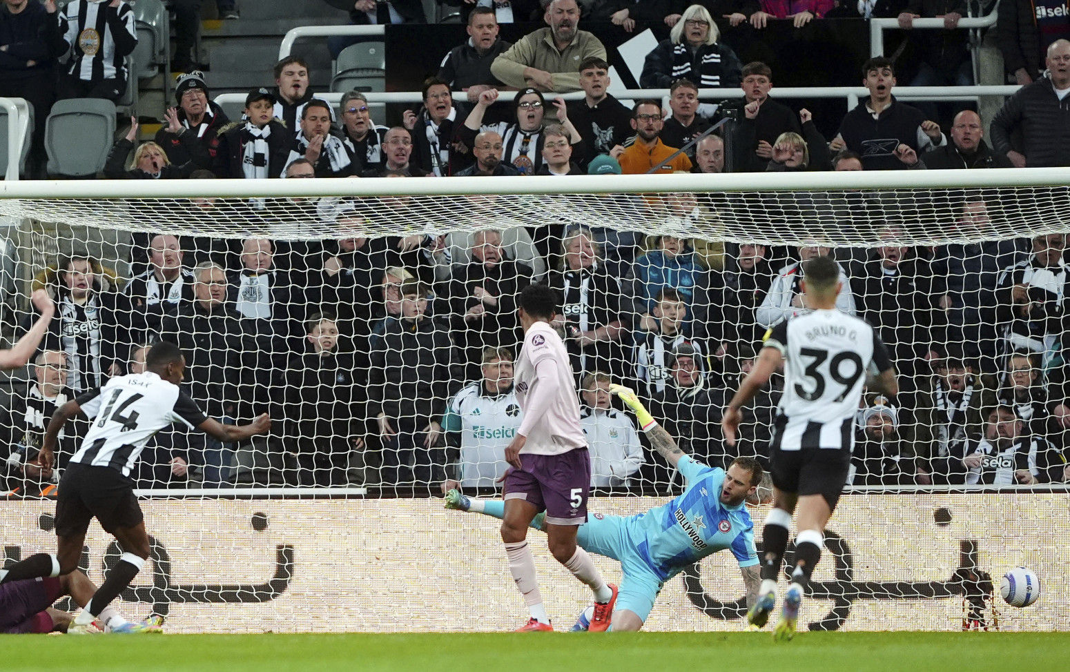 Aleksander Isak je doneo vođstvo "svrakama" u drugom minutu nadoknade prvog poluvremena. Brajan Mbeumo je izjednačio iz penala u 66, da bi junak Njukasla bio Sandro Tonali, strelac pogotka u 74. minutu.