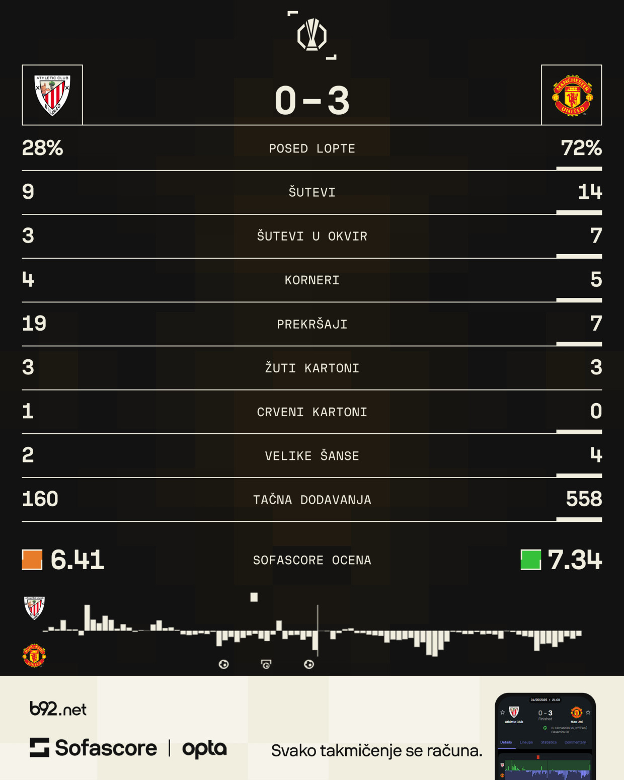 Najstrožu kaznu sigurno je izveo Bruno Fernandeš i svima na "San Mamesu" je tada bilo jasno da će san o finalu Atletik Bilbaa na svom stadionu ostati nedosanjan.
