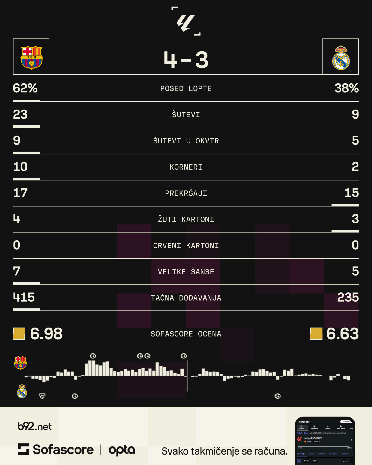 Posebno izuzetna bila je majstorija Jamala, u svom stilu, mada je i Rafinja sa svoje pozicije posle presinga doneo 3:2.
