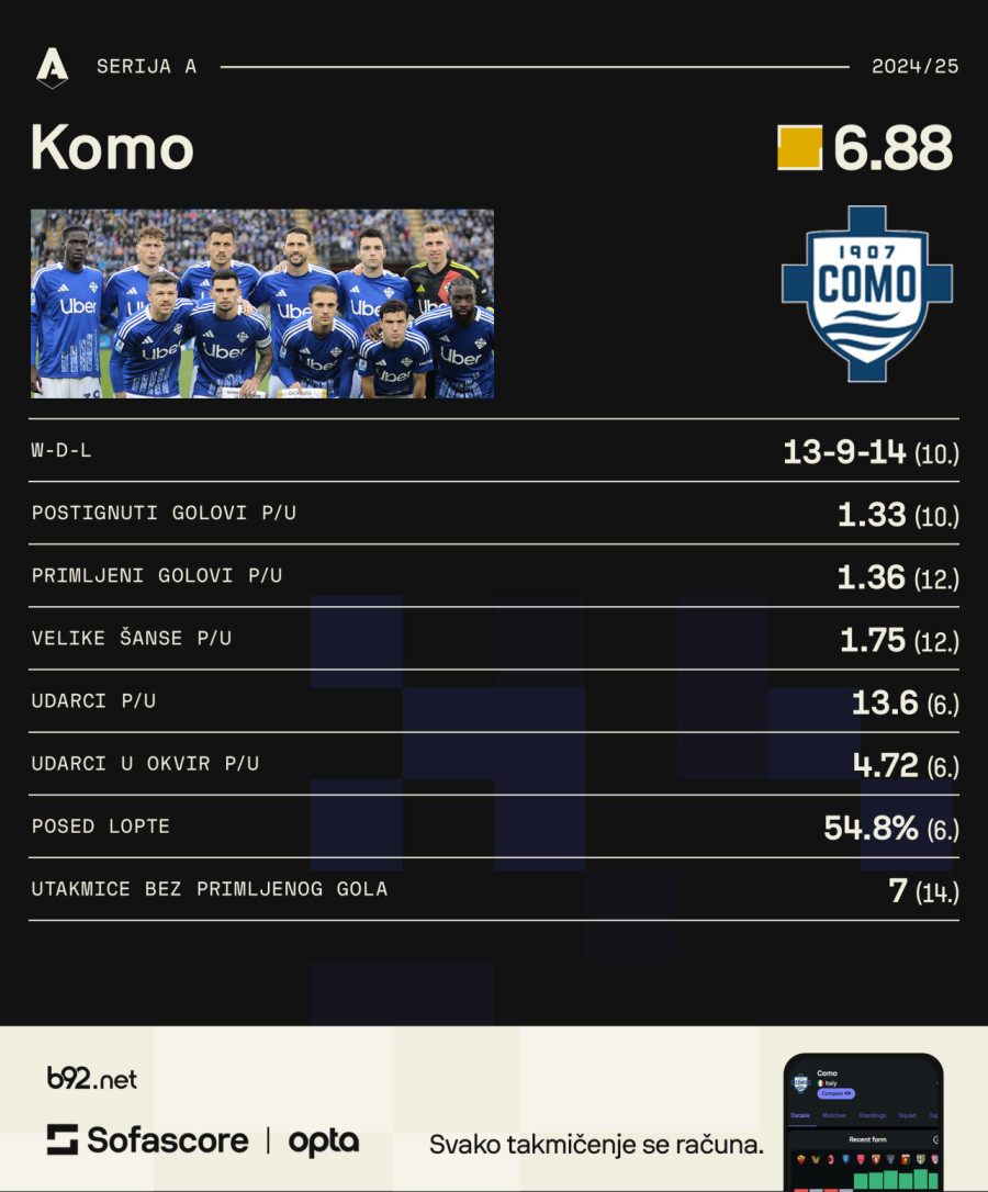 Ekipa Koma je najveće otkrovenje Serije A ali i u svim ligama "petice" ove sezone.