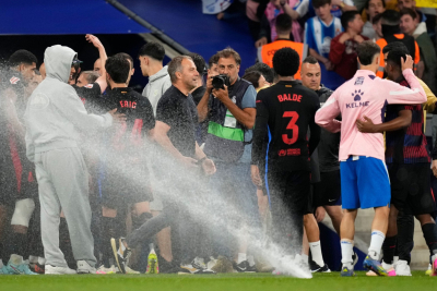 Usledila je nova diverzija Espanjola – kako bi pokvarili slavlje rivala, na stadionu su upalili vodene prskalice namenjene zalivanju travnjaka.