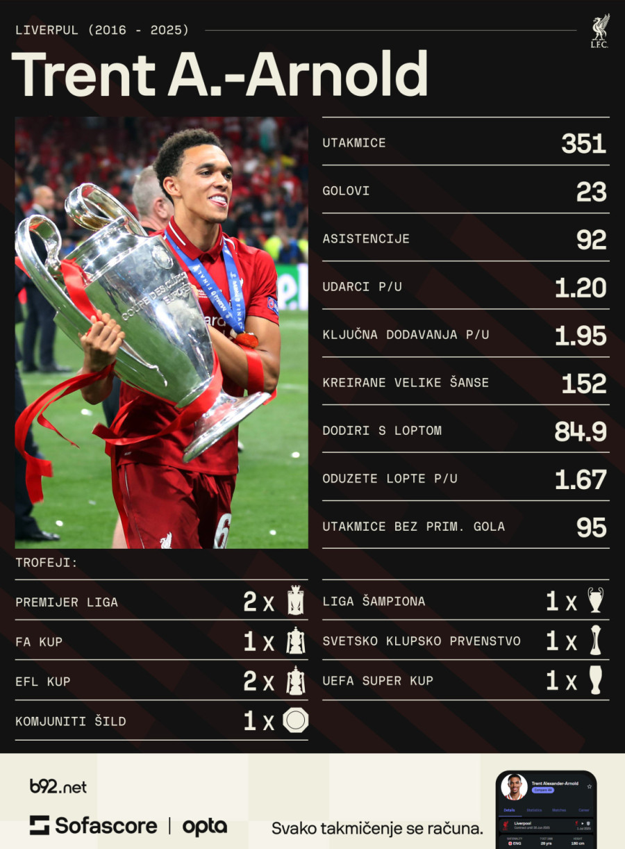 Prema pisanju stranih medija, Real je spreman da iskešira tu sumu za engleskog beka, ali navode da bi Liverpul mogao da traži i više, s obzirom na okolnosti pod kojim Trent napušta "Redse".