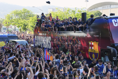 Drama na šampionskoj proslavi: Defanzivac Barselone pao sa autobusa! VIDEO