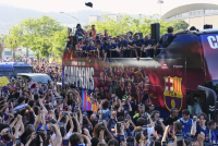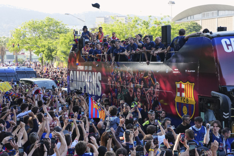 Igrači Barselone burno su proslavili psoednji u nizu trofeja ove sezone, posle slavlja u svlačionici Espanjola, Katalonci su potom  u otvorenom autobusu koji je prolazio kroz grad slavili s navijačima.