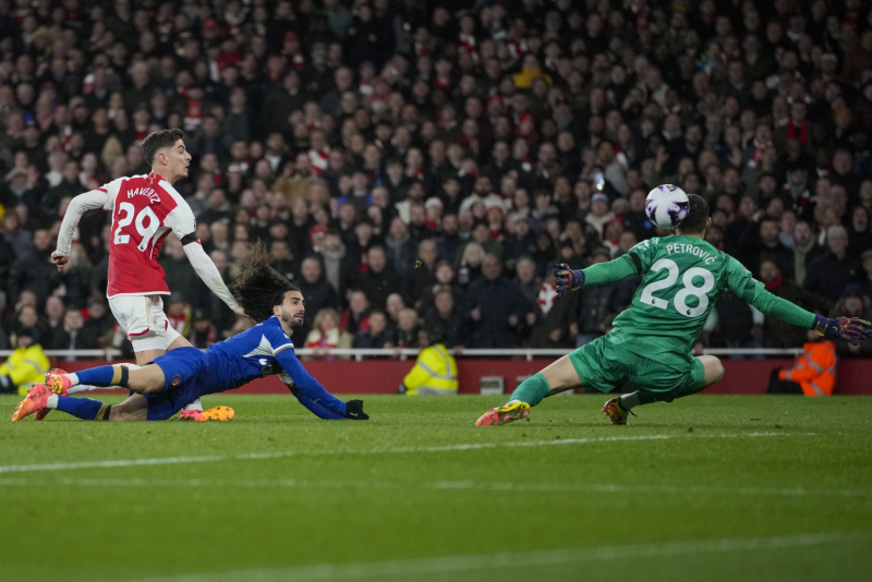 Čelsi je umalo iz nehata stigao do izjednačenja, pošto je lopta, posle pokušaja usamljenog Nikola Džeksona da proigra nekog u šesnaestercu Arsenala, pogodila Gabrijela, a onda i stativu.