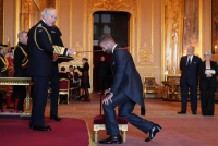 Pedestogodišnji Bekam, koji se ranije ove godine našao na rođendanskoj listi počasti kralja Čarlsa, primio je odlikovanje lično od monarha tokom svečanosti održane u Berkširu.