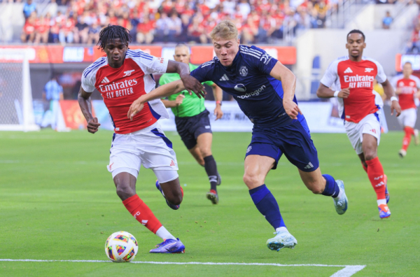 Fudbaleri Mančester junajteda Rasmus Hojlund i Leni Joro povredili su se tokom pripremne utakmice u porazu od Arsenala u Los Anđelesu.