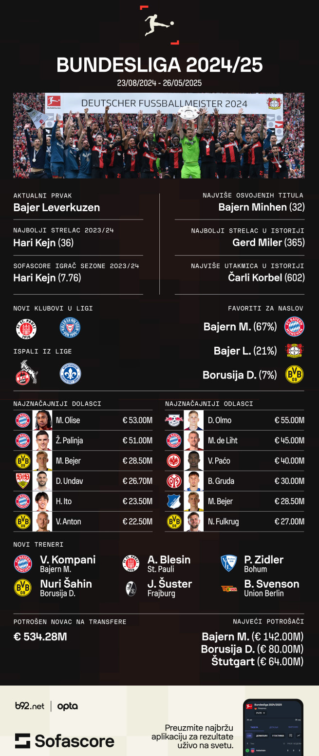 Posle neverovatne prethodne sezone gde je Bajer Leverkuzen bez izgubljenog meča uspeo da osvoji titulu – Bundesliga se vratila i obećava više nego ikad.