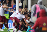 Samo što je Tomas Souček postigao drugi gol za "čekićare", nastalo je veliko slavlje na delu tribine iza gola gde su bili navijači Vest Hema.